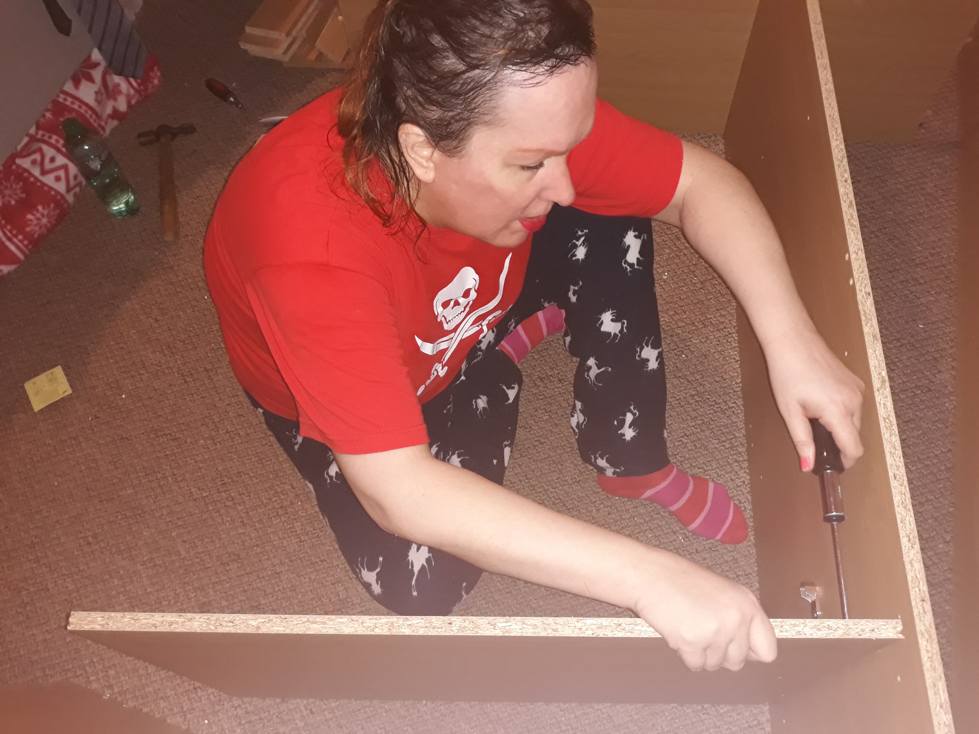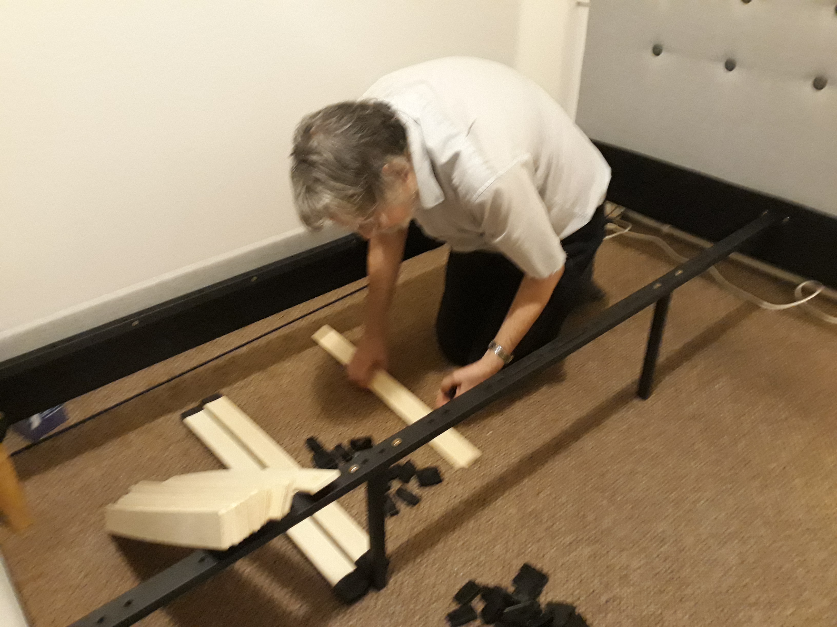 The first piece of furniture my darling Ian and me did was the bed – it was quite big and heavy, and needed two people, but we managed!
