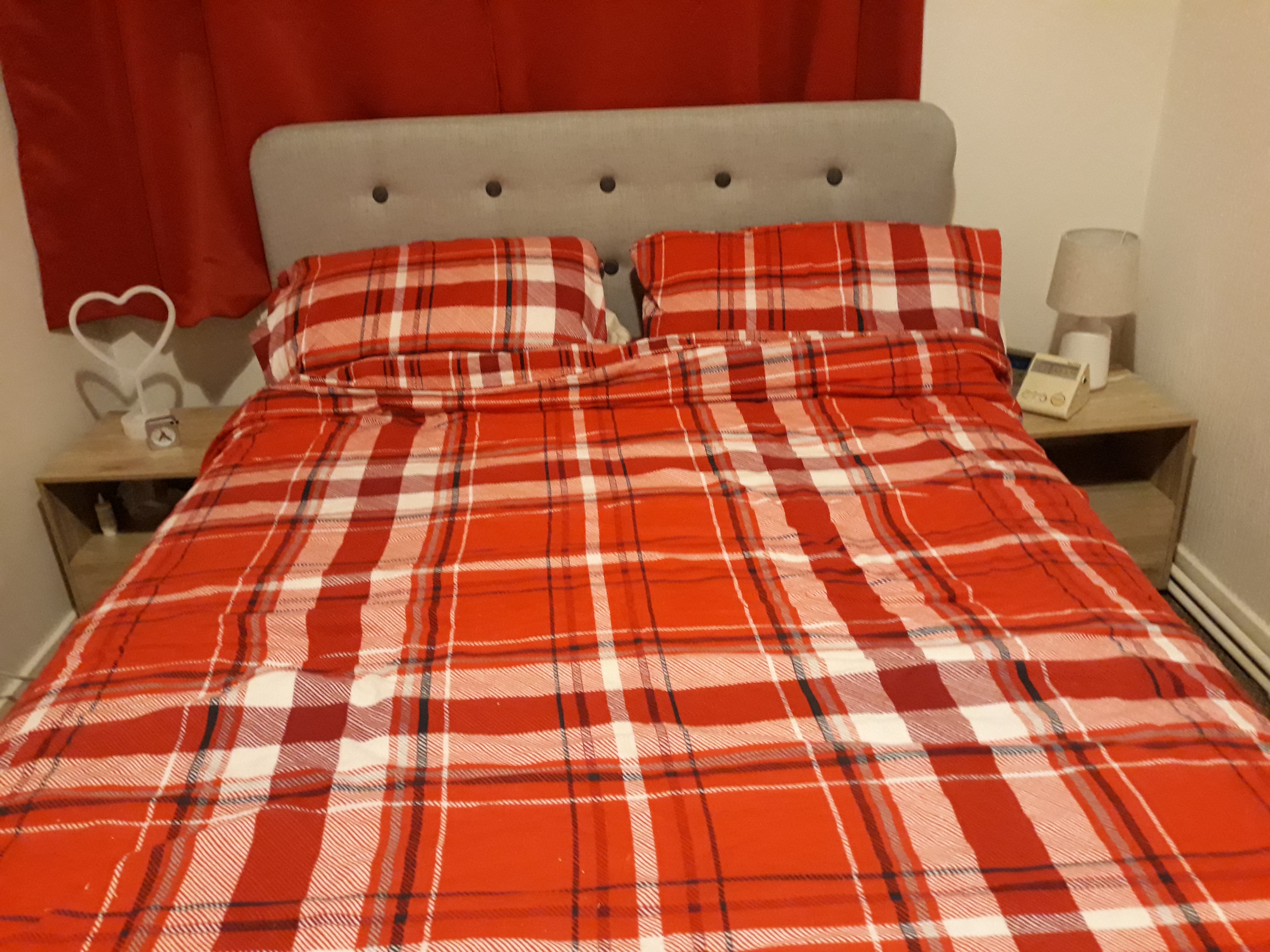 Next came the bedroom: after we’d slept on air beds for a couple of weeks, the bed came in, then the curtains and the bedside tables, and finally the wardrobe.