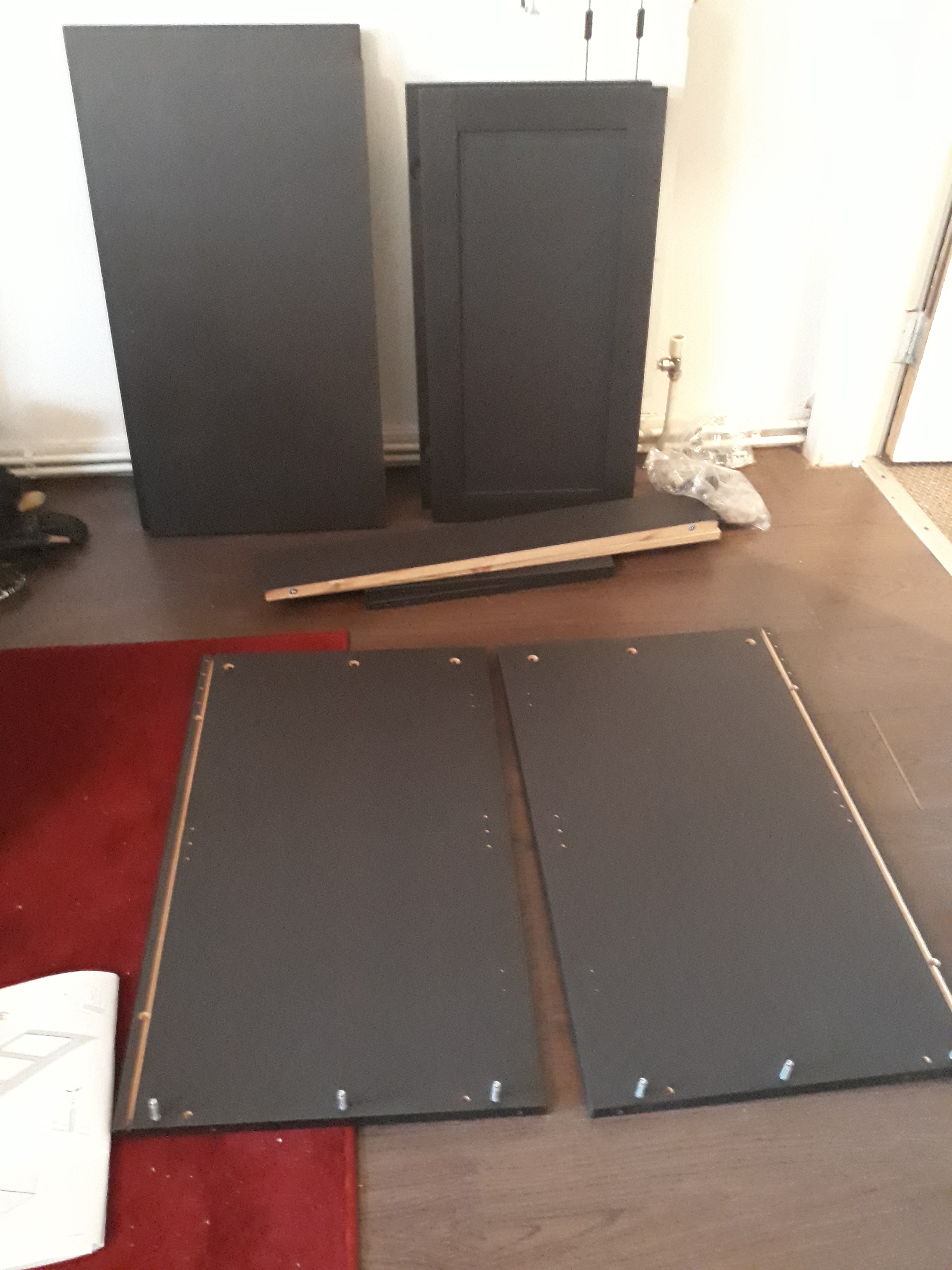 The sideboard from IKEA proved to be a bit challenging, too: while everything else was pre-drilled and marked perfectly, the hinges of all things just didn’t work in the beginning; the screws wouldn’t go in with anything, and no advice about it, either – until I went online and googled the problem, and a very simple answer came up: put the screwdriver on the screw, and give it a good whack with a hammer! That worked, and so we’ve got our CDs and DVDs all sorted nicely now. I must say, though I thoroughly enjoyed our DIY, I was rather glad this one was the last one for a while…