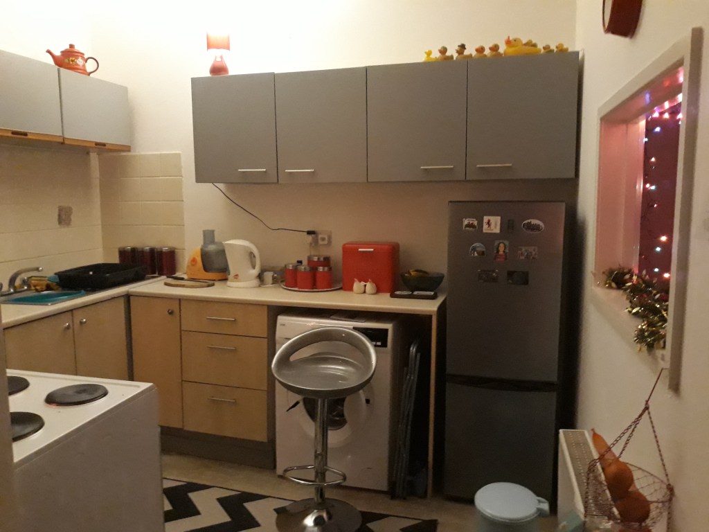 And my own workspace – for trying out many more new recipes to write to you about, dear friends – is, of course, my new kitchen. I was thrilled with it from the very beginning – SO much space for everything, lots of cupboards and drawers and workspace! I started tidying up and adding a few more things: a big spice rack for all the spices, herbs and stock cubes, a deep fryer and even a pasta machine!! I’ve never owned either of those before, so as soon as I’ll try them out I’ll tell you more about them…