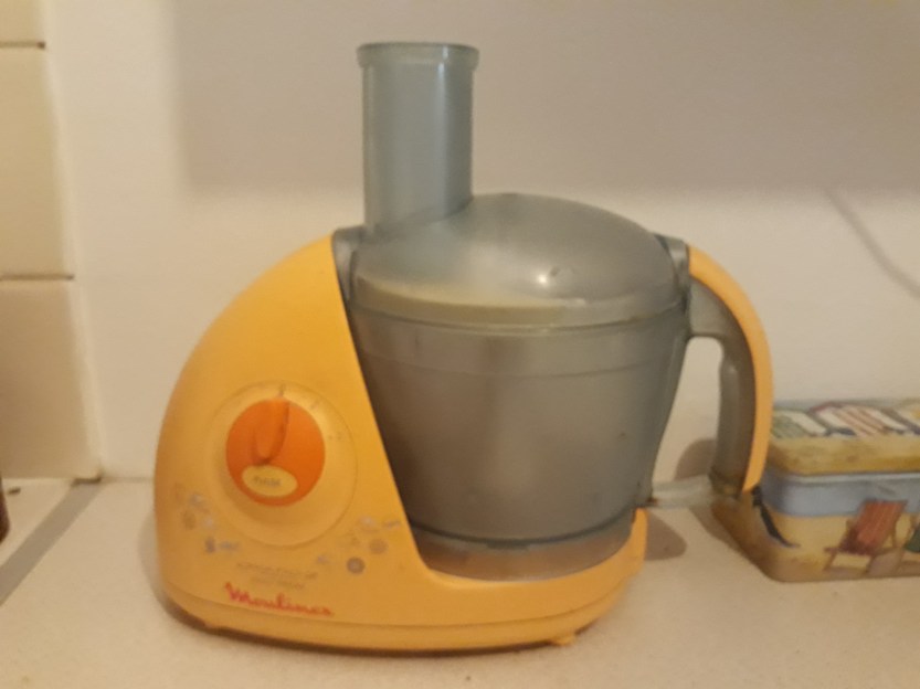 Now, in this new year and this new lockdown, I’d like to give you a few tips for useful equipment you could get in order to try out new things in the kitchen. I’ve been lucky enough to be able to obtain a lot of them recently after our move; but the most important one I’ve had for years: my good old Moulinette, my food processor. It’s almost 20 years old, and according to e-commerce sites it’s a vintage model now!