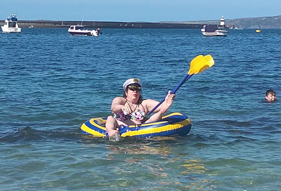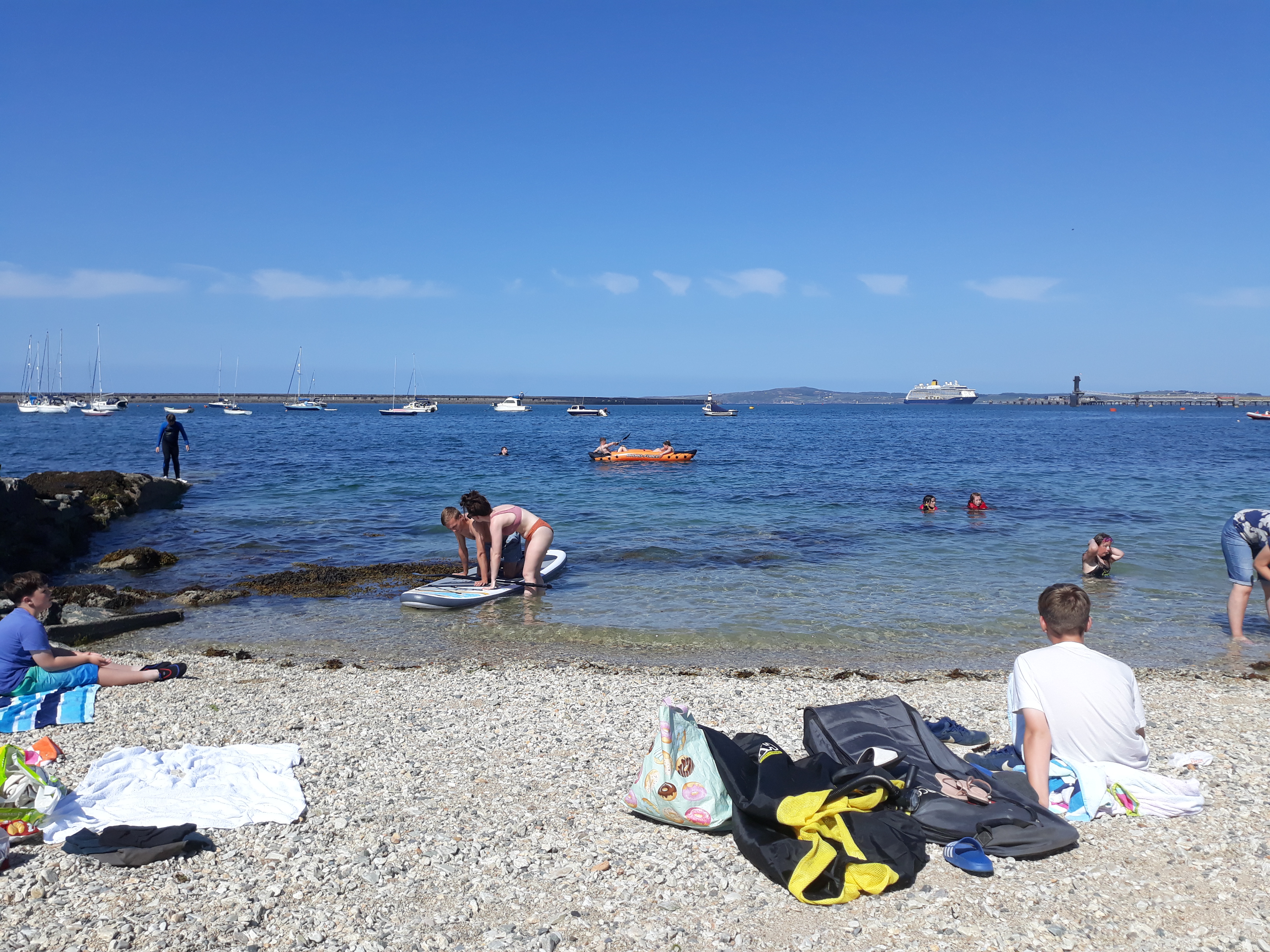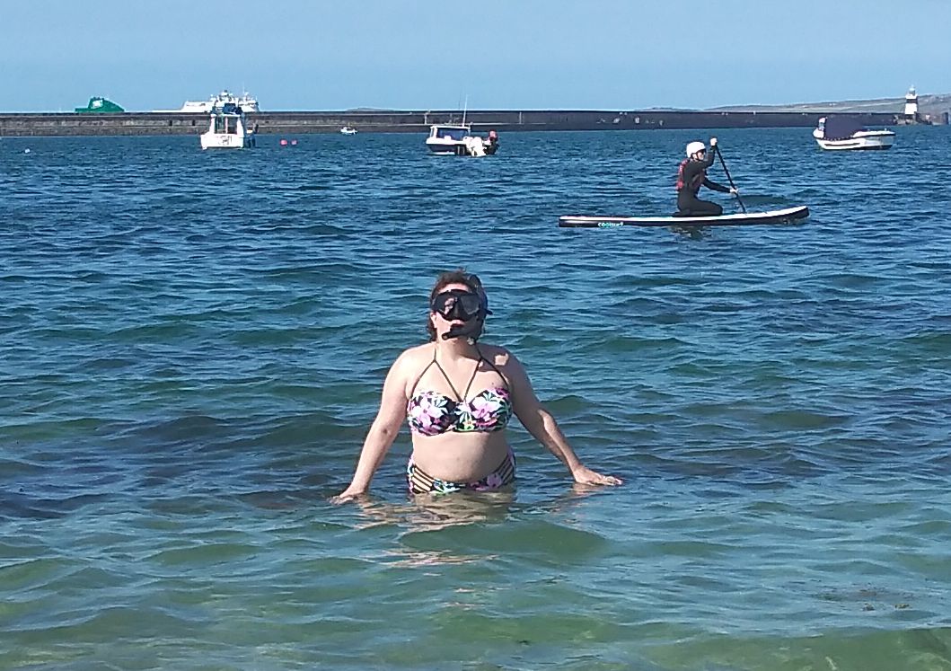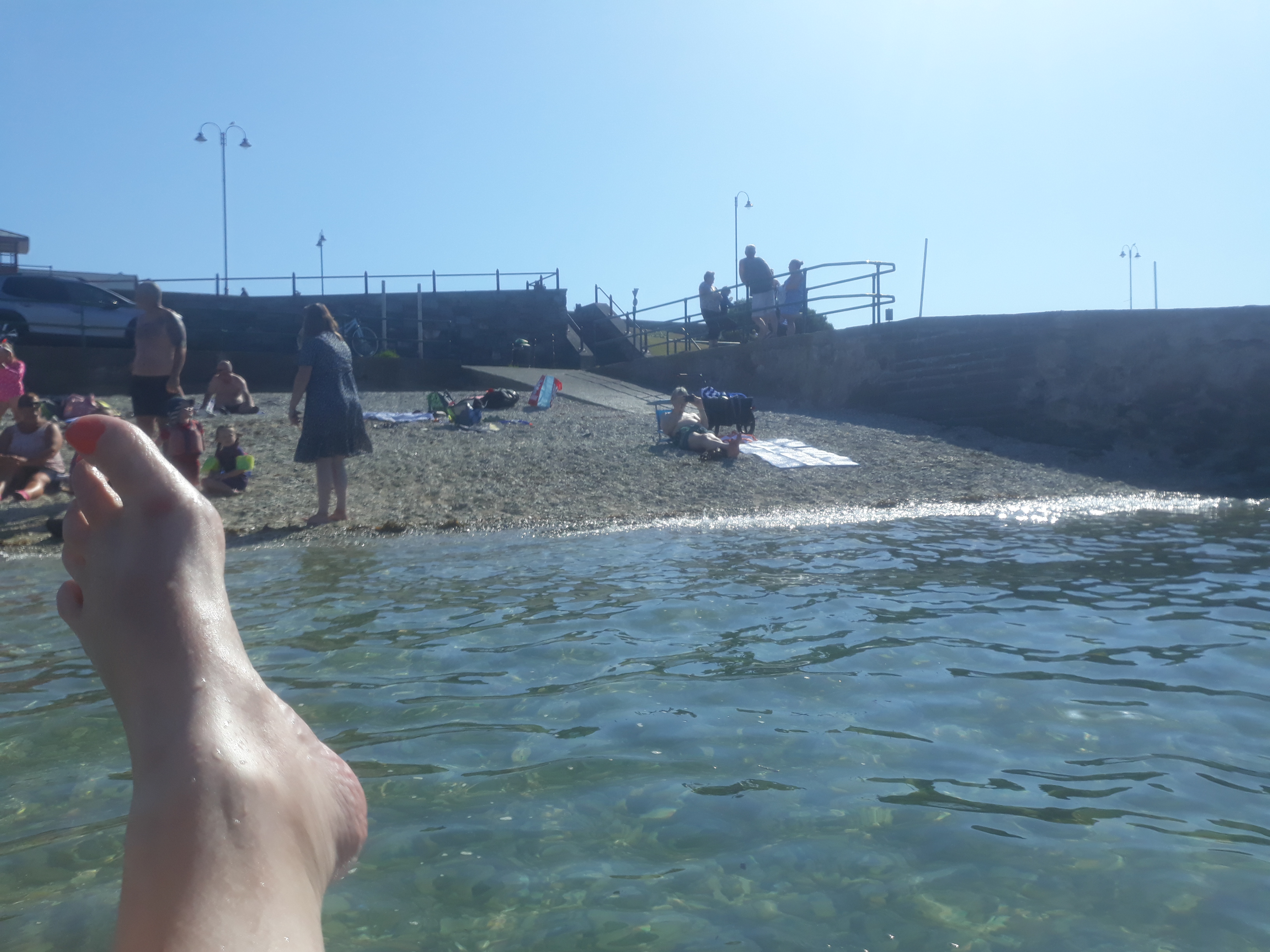 How are you enjoying your staycation, dear friends? I’m sure you’ll find that wherever you are, you’ll find some way, some place, to enjoy yourselves, get out, get some fresh air and sunshine and exercise – a park, a swimming pool, a wood, a stream or lake, or, if you’re as lucky as us, even the sea itself…