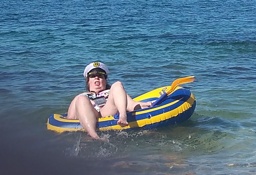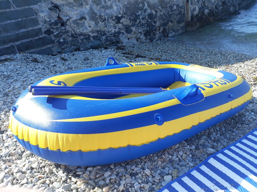 And now I’ve also got something I’d always wanted ever since I was a kid: an inflatable boat! I named her Lucy, and we put her in our trailer and went to the beach, and while Sue was patiently waiting in the parking lot, I went ‘skipping’ with Lucy.