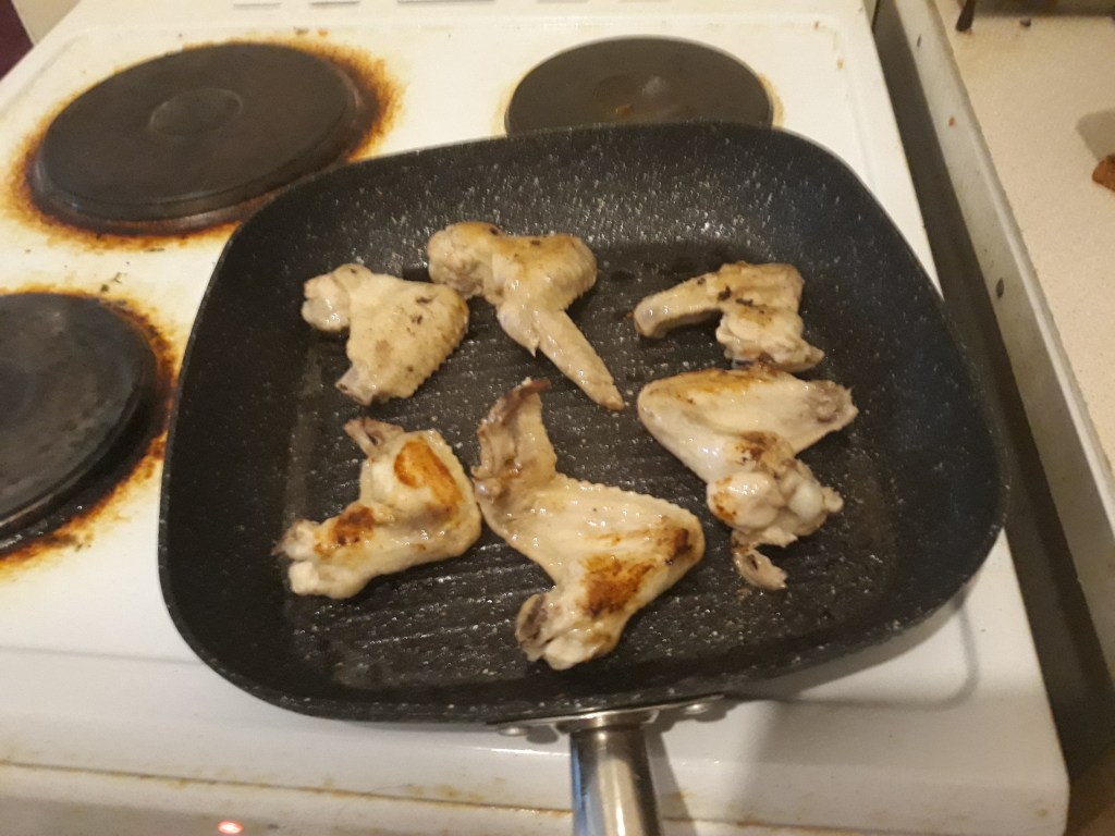 Chicken wings: Cook the wings for 10-12 minutes in water first, then dry and brush with oil (you can add honey here as well). Grill on a high temperature for another 10-12 minutes; they’re ready when brown and crispy.
