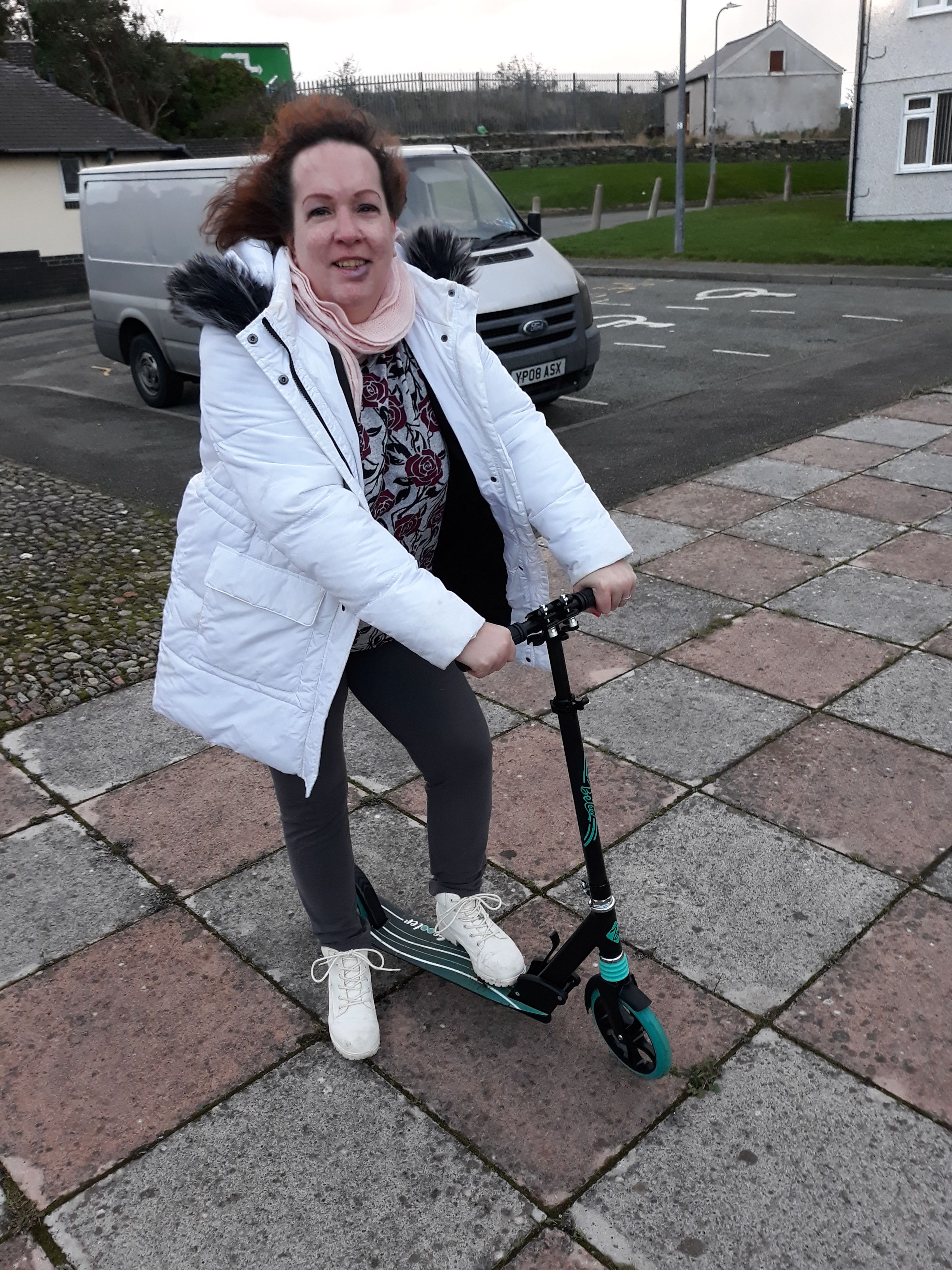 So, on my darling husband’s birthday, I tried Tom out when we went into town to a Thai restaurant to celebrate; and even though it’s quite a bit of an uphill trip, I didn’t have any problems getting there! And as for the trip back – just stand on your scooter and let it roll; it’s SO much easier than walking, and so much better for the back and hips…