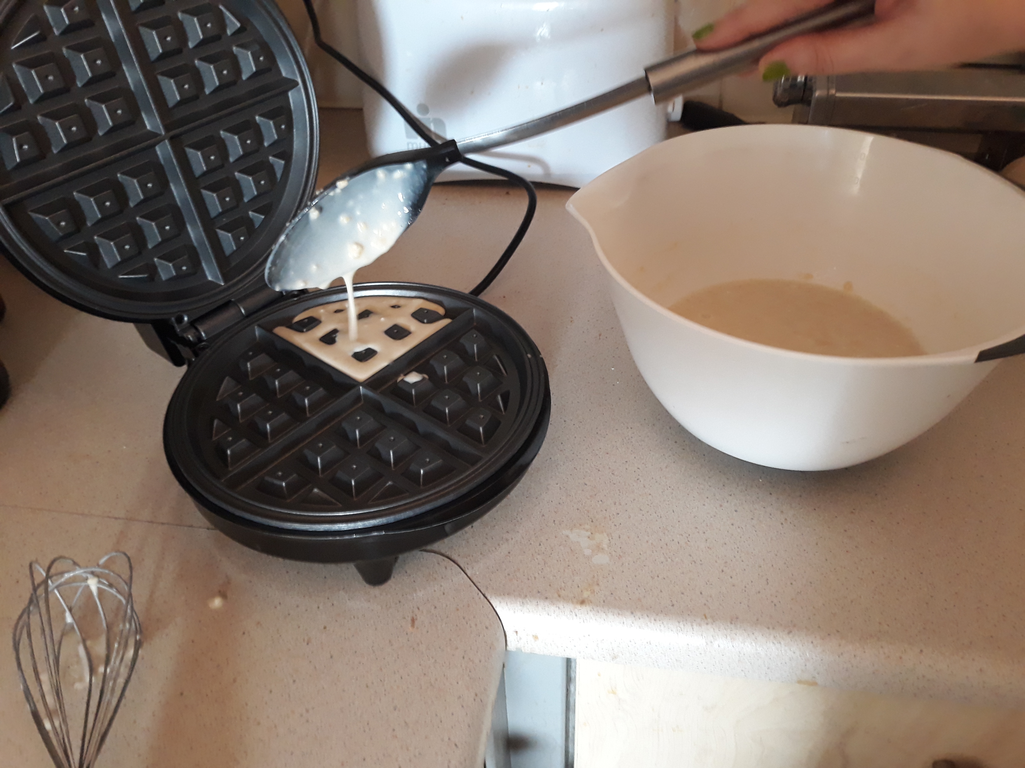 Ladle the batter onto the grid until it’s covered completely, close the lid and bake for 3-4 minutes until golden brown (you can open the lid any time to check).