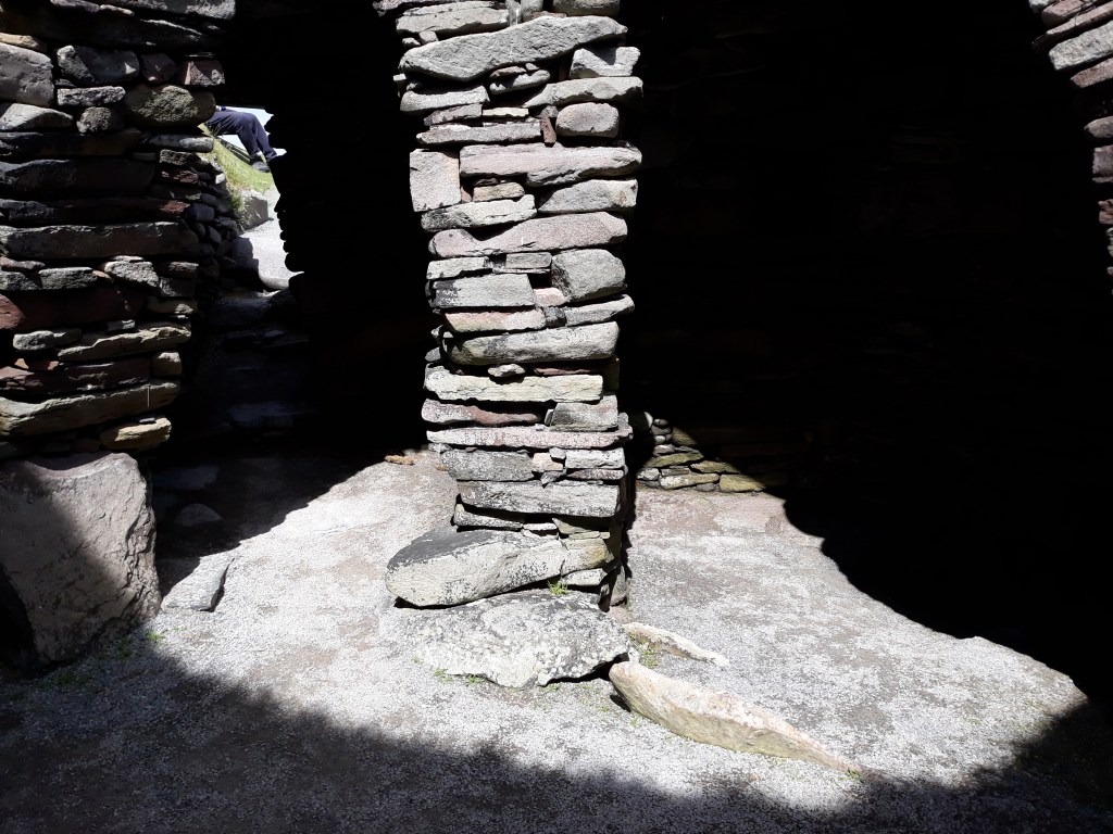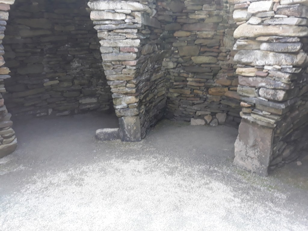 200-300 years later, the way of building changed again (perhaps with the structure of the little society occupying the site?), and structures called wheelhouses began to be built: a round central room with little chambers all around, which made the roofs look like wheels.