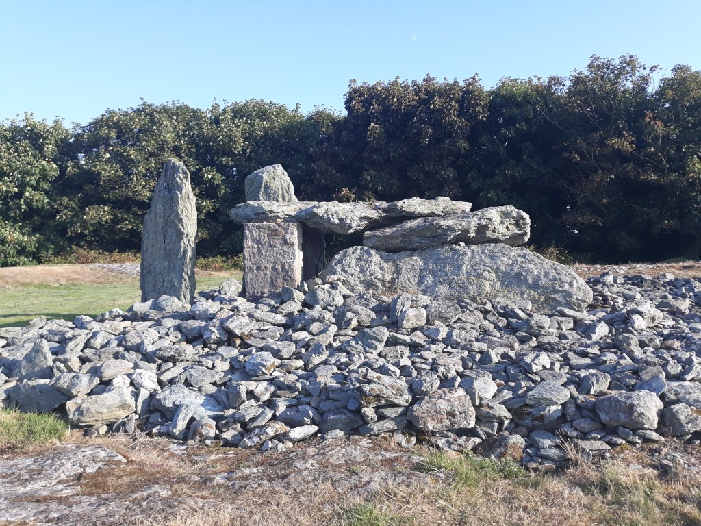 And while coming back into Holyhead, we also took the opportunity, while we had a car, to at last find our very own standing stones which to our shame we hadn’t discovered yet even though we’ve lived here for almost two years now: Trefignath, another burial site from before 3,000 BCE. A breathtaking site with three burial chambers, one of them topped with portal stones; this is just as good as Stonehenge – why hadn’t we got around to visiting it earlier?? When you’ve got a guest to show around the place, that’s when you really discover your hometown…
