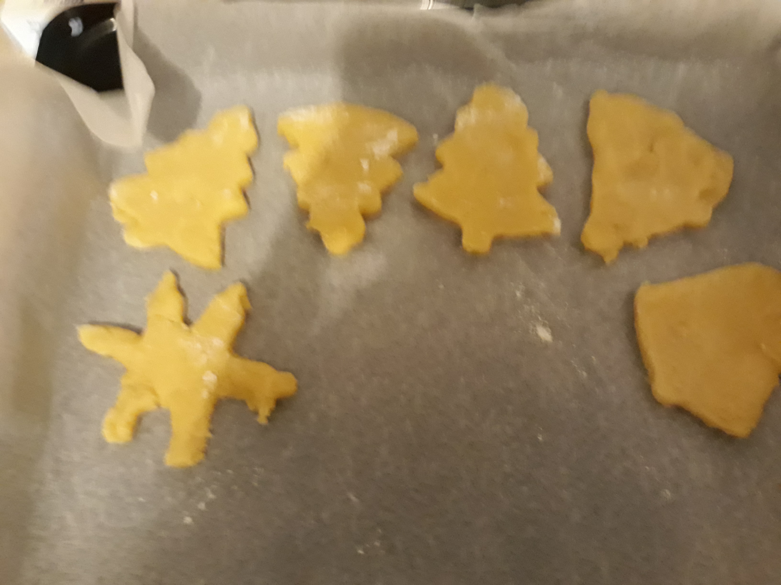 For cutting the cookies, the best thing is to have a metal or plastic set of cookie cutters; they’re very easy to obtain online. You can also use a knife and cut out your own shapes, though!